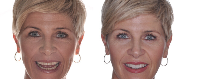 Digital Smile Design, or DSD, was developed by Brazilian dentist and ceramist Dr Christian Coachman. It involves careful analysis of the face, and customization of teeth within the face. I worked closely with Christian, inviting him to my office to work together on this case. In collaboration with Bradley Grobler, Master Ceramist, our team produced a stunning smile that truly reflected the patient's personality.In addition to designing complimentary tooth shapes with veneers, we had to open the bite and raise the height of the teeth. Re-engineering a bite is precision treatment that takes careful planning.